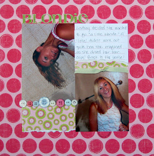 Continuing on with my 50 page challenge. I really want to finish this because when I walked in to Michaels to purchase adhesive (which I'm allowed to buy...how else would I finish the challenge? lol!) there were MANY, MANY goodies I wanted to buy. I almost caved, but I was a good girl and put it all back except for the adhesive that I originally went in for.